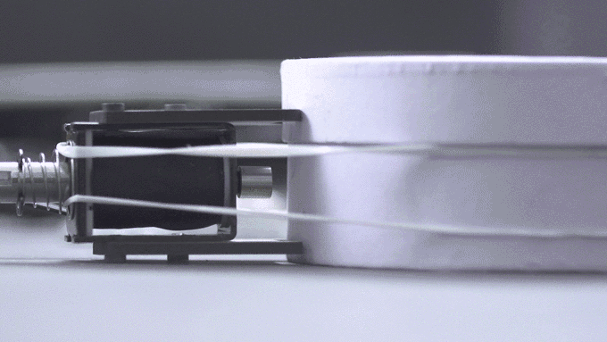The round object mount attaches solenoid beaters to circular surfaces like drums or bottles—simple and flexible for creative setups.